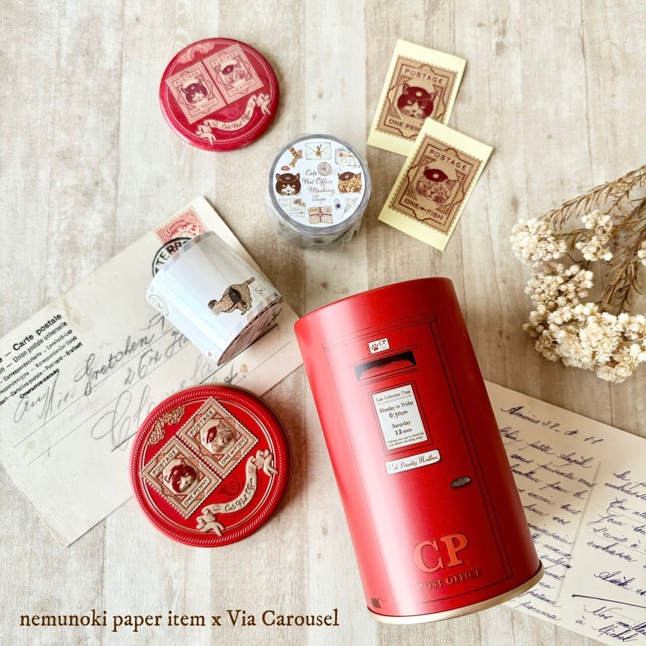 ・猫たちの郵便局 ポスト缶入・紙ものセット