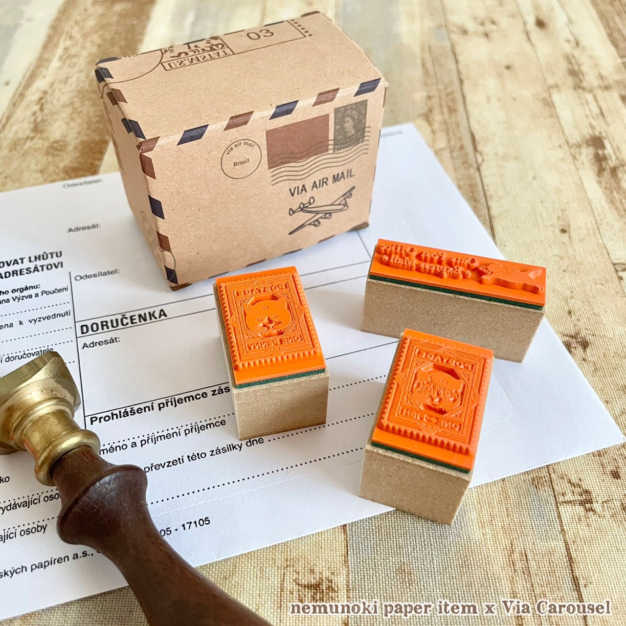 ゴムハンコ(木製持ち手付き)3種・各1点(専用BOX付き)