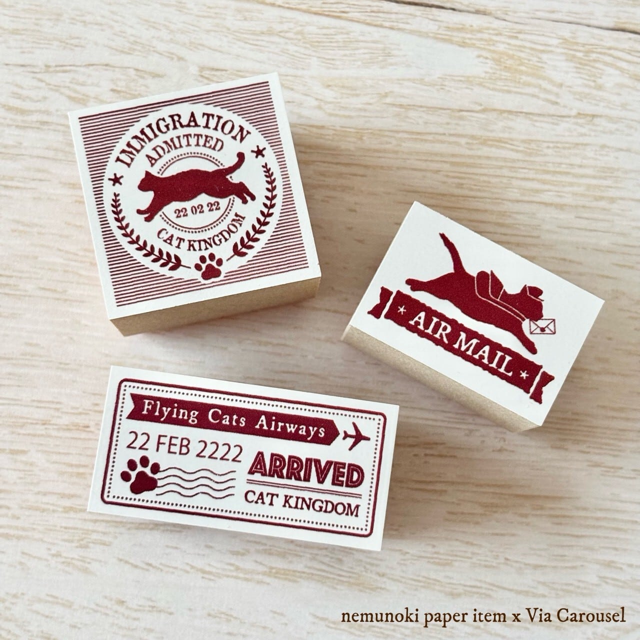 ゴムハンコ(木製持ち手付き)3種・各1点(トランク型ボックス入り)